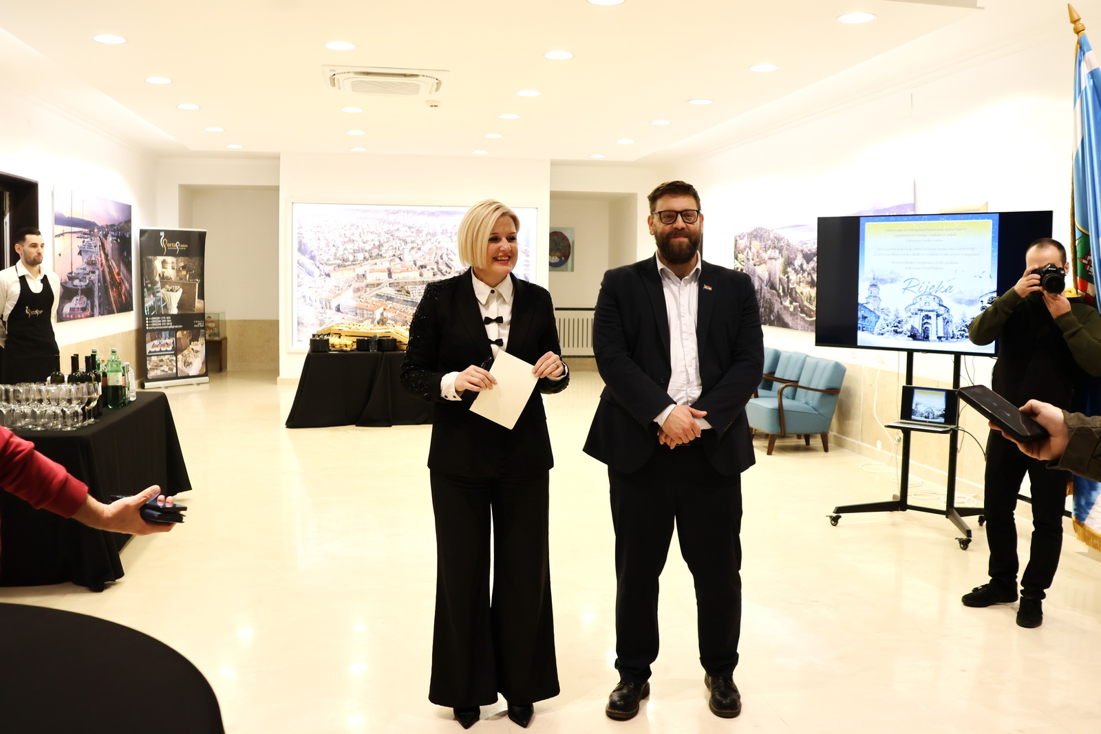Predstavnike medija pozdravila je gradonačelnica Rijeke Iva Rinčić, u pratnji zamjenika gradonačelnice Vedrana Vivode. Prijem je organiziran povodom završetka godine i šest mjeseci rada nove gradske uprave, a nakon uvodnog obraćanja uslijedilo je neformalno druženje.