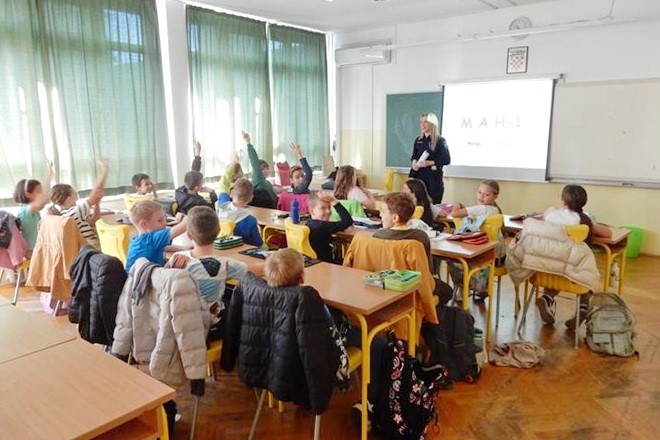 Policijska službenica I. policijske postaje Rijeka, Sanja Trbojević, održala je dva interaktivna predavanja za 21 učenika 4a i 18 učenika 4b razreda, uz prisustvo učiteljica Andreje Belamarić i Nine Matković.