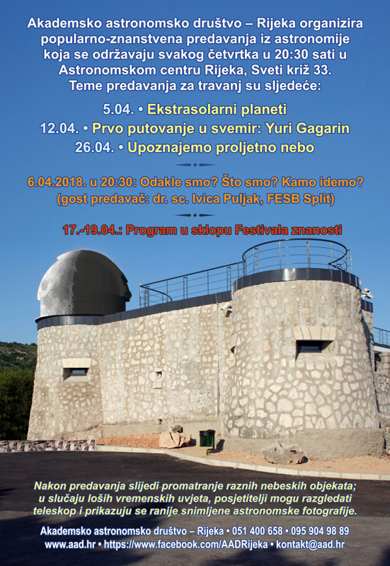 Akademsko astronomsko društvo Rijeka organizira niz predavanja u Astronomskom centru Rijeka