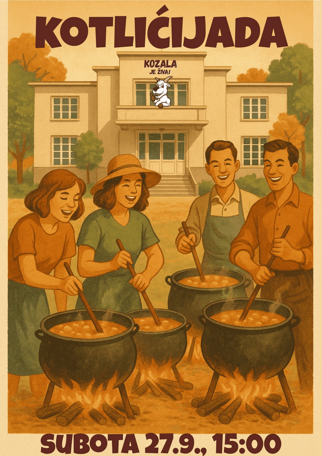 U subotu, 27. rujna 2025. godine, u 15:00 sati, ispred zgrade MO Kozala, Volčićev trg 2, održat će se prvo kvartovsko natjecanje u kuhanju kotlića – Kotlićijada.